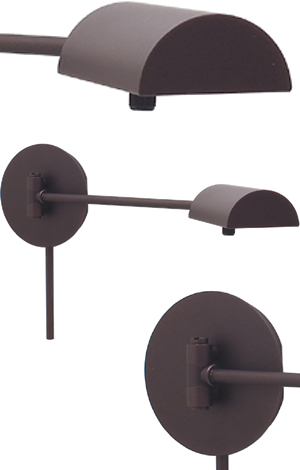 Swing arm lamp. 50W halogen with full range dimmer in shade. Durable powdercoated finish. Coordinating Floor Lamp and Desk Lamp available.