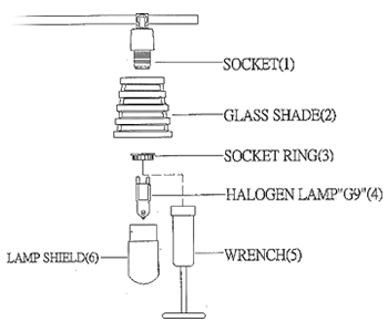 6 x 50 watt GU10 halogen, included