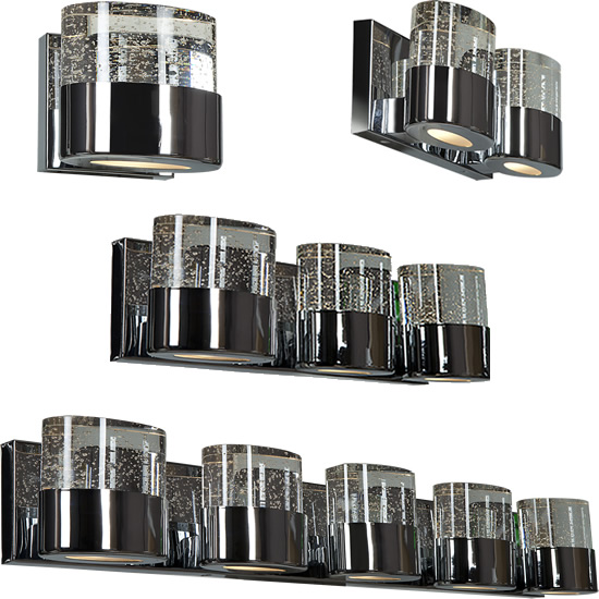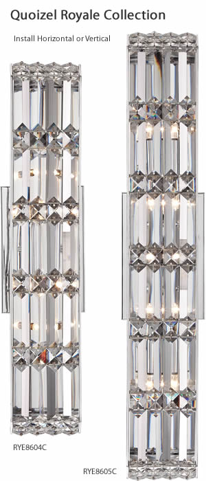 Quoizel's Platinum Division is fit for royalty with the aptly named Royale collection. The chic Polished Chrome finish and sparkling intricate crystals are opulence at its best. All Royale bath fixtures can be mounted as uplights or downlights, horizontal or vertical.