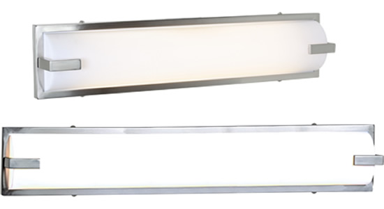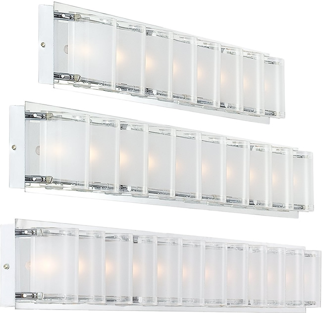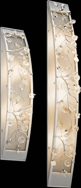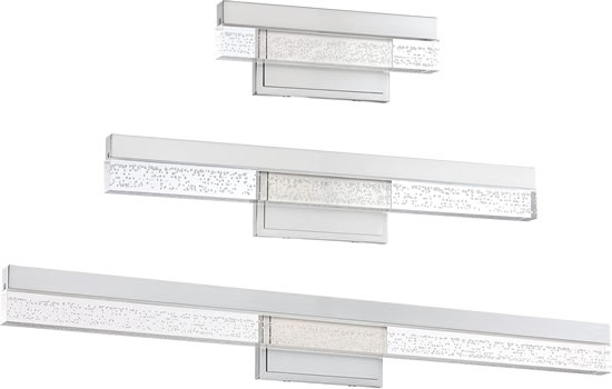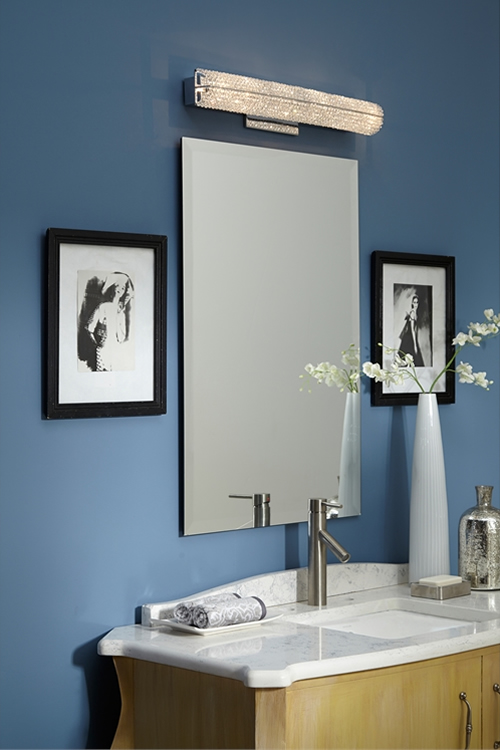 Bath sconce, can be mounted vertical or horizontal. Experience the alluring impression of soft, subtle candlelight with this chrome finished linear wall fixture from the Jardine collection. Its sculptural, delicate flourishes, Clear Optical Crystals and Etched Glass create fascinating shapes and a beautiful glow.
