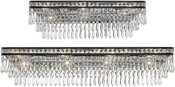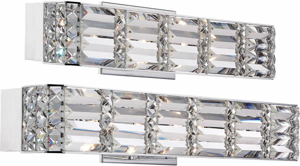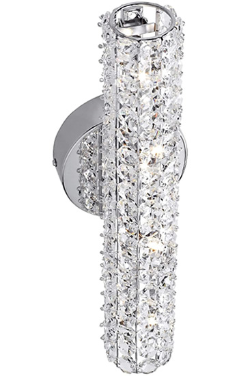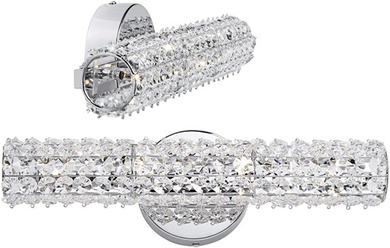 The Evermore wall fixtures offer a resplendant design of glamour and glitz. The abundance of multi faceted crystals are enhanced by the Polished Chrome finish and the supplied Clear Xenon bulbs showcase the sparkle of this sleek series.
