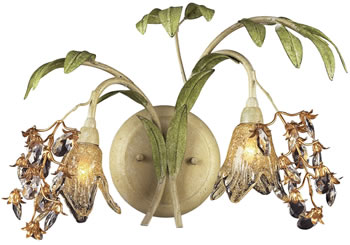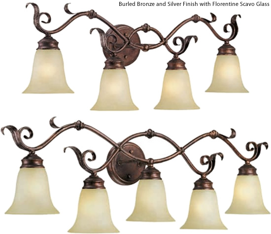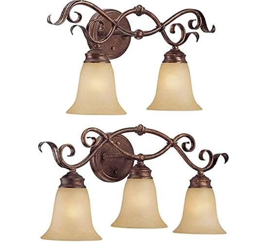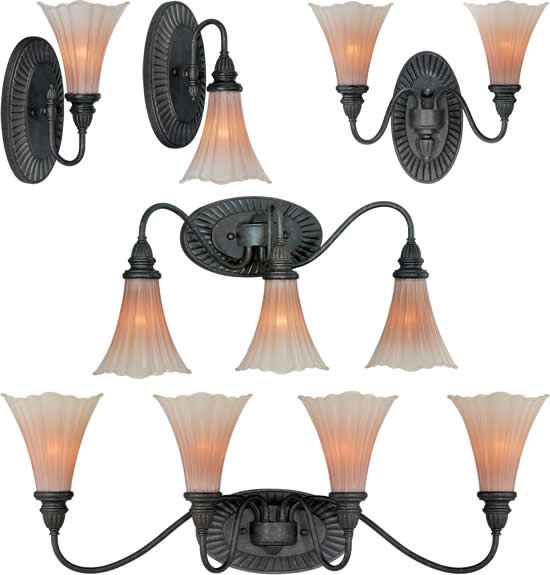 Kalco 4753 and 4754 Napa Bath Brackets in Golden Wheat finish with Snowflake White glass