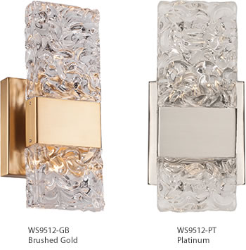 Kuzco's Oslo collection features fine textured ice-like glass used to achieve a delicate stunning look. The snowflake-inspired pattern on the chandelier is absolutely exceptional. Matching vanity and wall lights round out your space beautifully. Available in our new Brushed Gold and Platinum finishes, it will be sure to enhance any room.