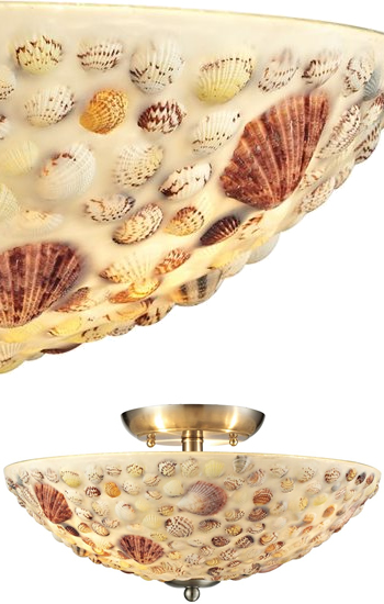 ELK Group International 10411/3 Seychelles, Truly Coastal 30984-SN Nissi Semi Flush Ceiling Light with Sea Shells