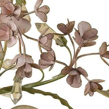 Cut metal blossoms are hand-shaped and hand-painted.