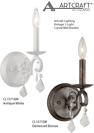 Artcraft Lighting CL1571DB, CL1571AW Vintage 1-Light Crystal Wall Bracket