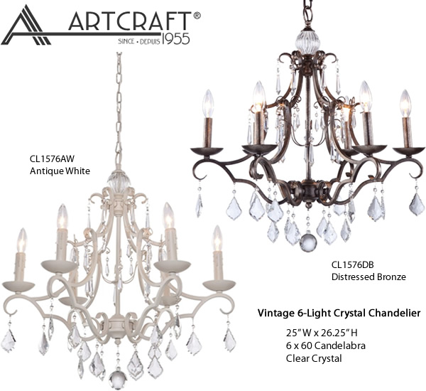 Artcraft Lighting CL1576DB, CL1576AW Vintage 6-Light Crystal Chandelier