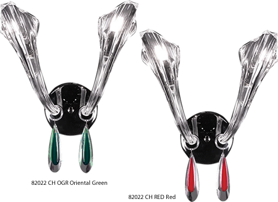 Venetian Style Mouth Blown Glass Upswept Arms with Jewel Swarovski Crystal