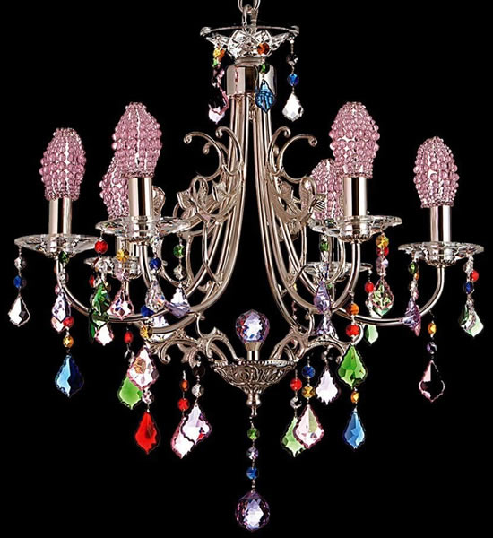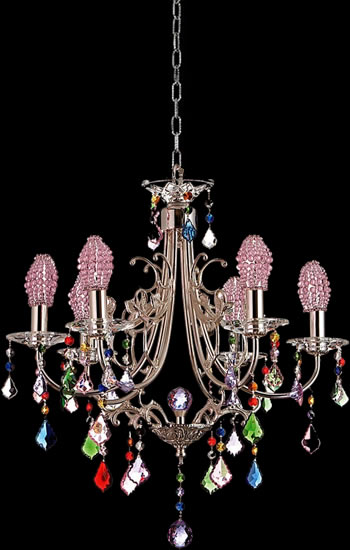 These low priced versions of classic crystal chandeliers use some glass and readily available crystal pieces to create charming copies of much more expensive crystal chandeliers. They are opulently dressed. You will not be disappointed. Perfect for charming dining room or for a little girl's room.