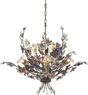 Elk Group International Brillare Collection is inspired by vintage French chandeliers from the 1920s. Like the opulent Maison Baguès chandeliers, these timeless and romantic pieces are delicate and detailed with hand-blown glass flowers, molded leaves and multi-colored crystals.