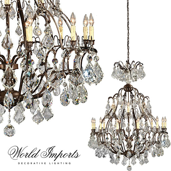 The World Imports Timeless Elegance Collection has lighting designed to add elegance your home. Each piece features fire-molded crystals and a Flemish Bronze finish with drip candle sleeves for aesthetic appeal. They are made of a durable iron alloy, internally wired and UL listed to ensure safety.