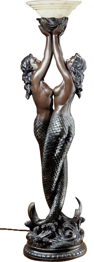 Design Toscano KY07903 Art Nouveau Entwined Mermaids Sculptural Torchiere Floor Lamp