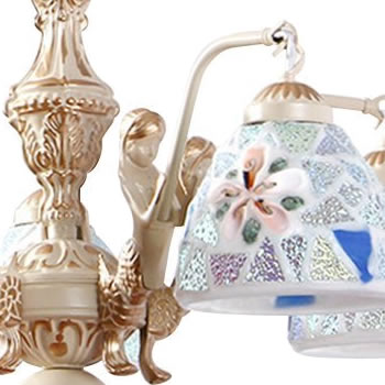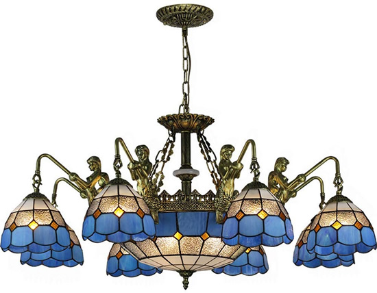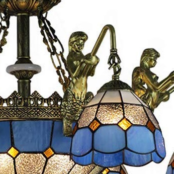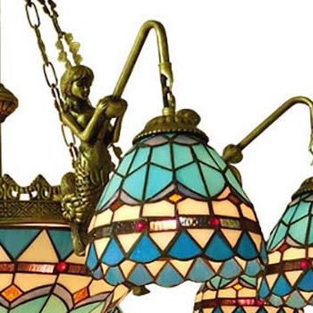 Mermaid Chandelier with Blue Tiffany Stained Glass