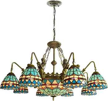 Mermaid Chandelier with Turquoise Tiffany Stained Glass