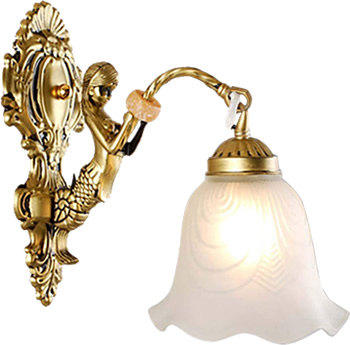 Polished Brass Mermaid Wall Bracket Sconce with Frosted Glass