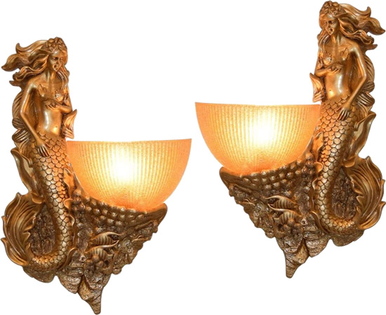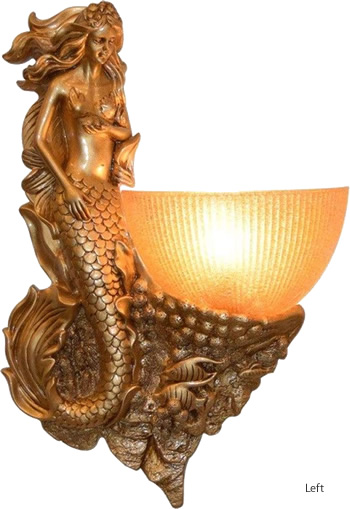 Gold Left and Right Mermaid Wall Sconces with Frosted Glass