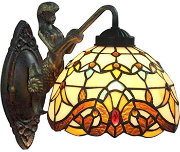 Mermaid Wall Bracket Sconce with Victorian Stained Glass