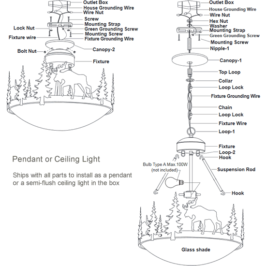 Ships with parts for ceiling light and pendant in the same box