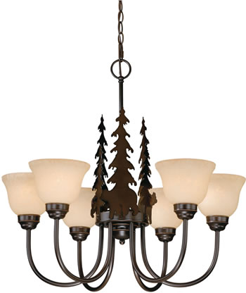 Vaxcel CH55756BBZ Bozeman Pine Tree and Bear Chandelier from the National Parks Collections