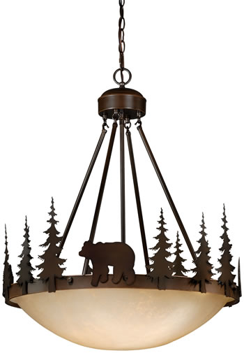 Vaxcel PD55724BBZ Bozeman Pine Tree and Bear Bowl Pendant from the National Parks Collections