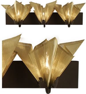 The Mani emits the deep, warm glow of burning embers through its crisply folded shade of brass, copper or stainless steel mesh. Choose from either a silver or rust colored backplate and two sizes of shade. Convert any of our innovative sconce designs into a triple and light your vanity. Mix with matching pendants, chandelier and Portables.