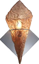 The Jak emits the deep, warm glow of burning embers through its crumpled shade of brass, copper or stainless steel mesh. Choose from either a silver or rust colored backplate and two sizes of shade. Convert any of our innovative sconce designs into a triple and light your vanity. Mix with matching pendants, chandelier and Portables.