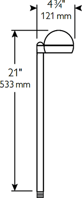HOUSING: Die-cast aluminum with twist-lock top for tool-less relamping. Stem is extruded aluminum. Single-piece molded silicone gasket to prevent water, dust, and insect filtration. 1/2" NPS male threads to screw onto accessory mounting stake or junction box, sold separately.