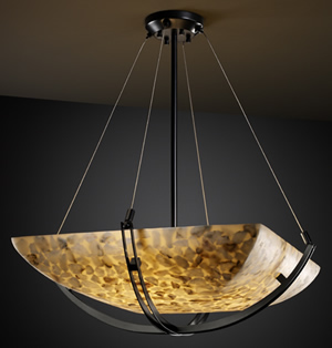 The innovative Alabaster Rocks!™ Collection, in which pieces of real alabaster are hand-selected and suspended in resin, offers a truly original mosaic look. When illuminated, each fixture displays its unique and varied colors, even more dramatically than solid alabaster.