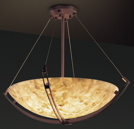 Justice Design ALR-9721, ALR-9722, ALR-9724, ALR-9727, ALR-9729 Round Alabaster Bowl Pendant with Crossbar Suspension from the Alabaster Rocks! Collection