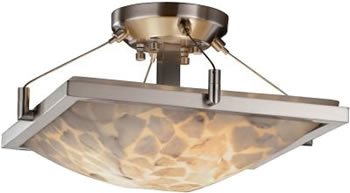 Justice Design ALR-9695 14" Square Semi-Flush Bowl Alabaster Ceiling Lights with Ring Suspension from the Alabaster Rocks! Collection