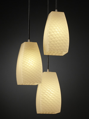 The Fusion Collection uses handcrafted artisan glass shades in five distinctive glass finishes: Droplet, Ribbon, Weave, Mercury Glass and Opal (white). These especially beautiful artisan glass finishes complement the clean designs of Justice Design fixtures.
