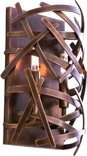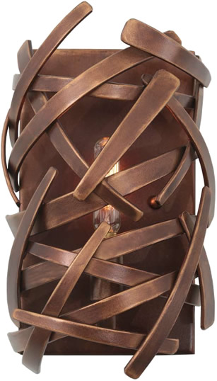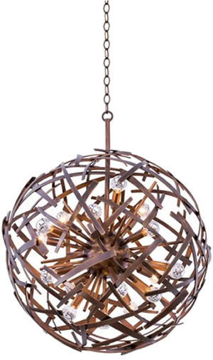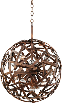 Kalco Ambassador Collection - Spherical Pendants in three sizes and a coordinating wall sconce all feature a Copper Patina finish. The unique criss-crossing straps work in a transitional, urban or contemporary interior.