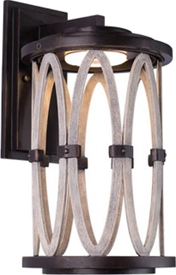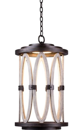 Exterior pieces are made with threaded glass covers for protection from the elements, heavy gauge aluminum construction, stainless steel parts and chains with a versatile Florence Gold finish and hand painted reclaimed accents.