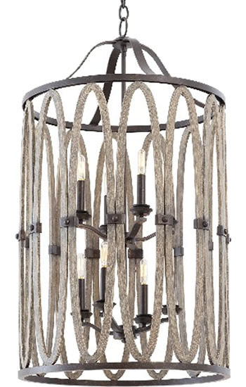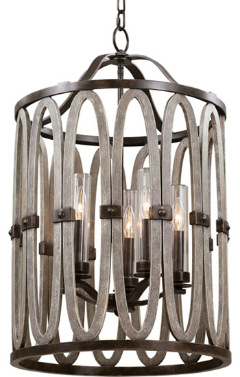 As a sconce, flush mount, chandelier, lantern or over-sized foyer centerpiece, the wrought iron paired with the painted drift wood accents of the Belmont line allows for style in any situation.