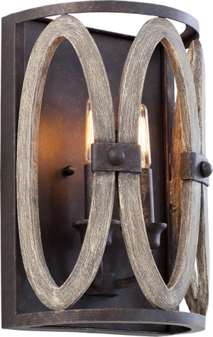 The Belmont Collection has Coastal Inspired design with Hand Painted Reclaimed Wood ring accents. Interior pieces are made of Hand-Forged Wrought Iron finished in Florence Gold holding rings with the look of driftwood.