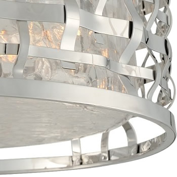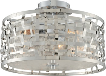 The Bridgeport Collection combines Woven Stainless Steel bands finished in Polished Stainless Steel. Clear Crackle Glass diffusers are perfect to display unique bulbs.