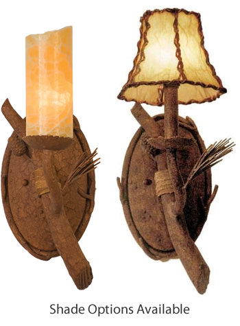 Optional Buckskin or mica chandelier shades are available or you may select from fabric shades or glass hurricane lamp shades. Some lighting is available with Calcite shades or your choice of glass or natural material diffusers.
