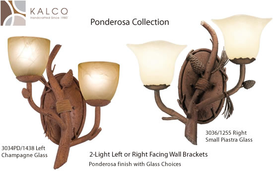 To complete the authentic feel, Kalco's craftsmen employ a rich, 14-stage finish that approximates natural bark in Ponderosa finish. This Collection includes a complete line of indoor and outdoor lighting and furniture.