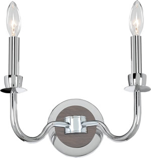 Modern/Transitional 2 Light Wall Bracket Chrome Plated Frame, Solid Wood Finished Bands and Accents