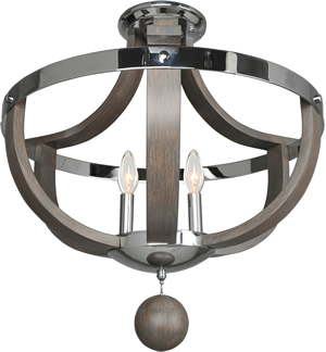 Modern/Transitional Ceiling Light with Chrome Plated Frame and Solid Wood Finished Bands and Accents