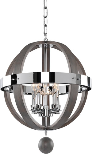 Modern/Transitional 5 Light Pendant Chrome Plated Frame, Solid Wood Finished Bands and Accents