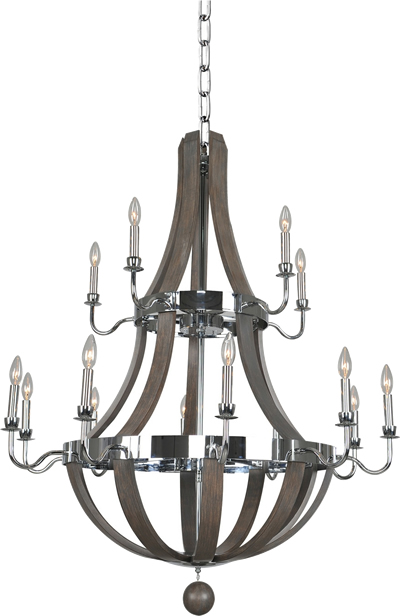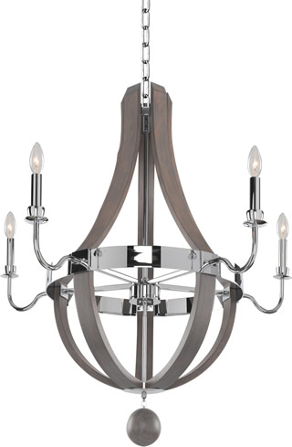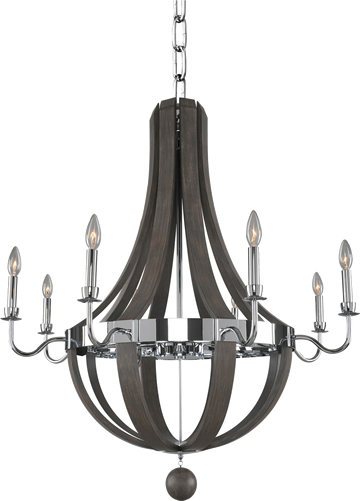 Modern/Transitional Chandelier Chrome Plated Frame, Solid Wood Finished Bands and Accents
