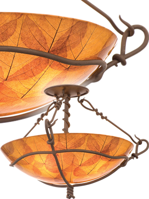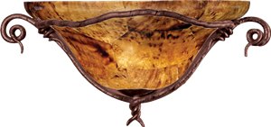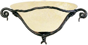 The Kalco Vine Collection features Bark finish. Select from Kalco's wide assortment of glass, fabric, natural shell or Calcite shades to customize your lighting. Then coordinate with Vine wrought iron furniture, mirror and bath hardware. Some sconces and pendants have Fluorescent options available.