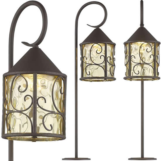 Decadence flows from the Mediterranean-influenced design of this energy-efficient six-piece LED landscape path light set from the Casa Seville collection by John Timberland®. Add unmistakable romance and charm with a set of outdoor lights fashioned from dark walnut finish steel and hammered champagne glass. Scrolling arms seal the artistic rendering of a set of lights that works with existing low voltage landscape lighting systems.