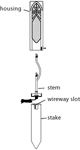 HOUSING: Die-cast aluminum. Stem is extruded aluminum. 1/2" NPS male threads to screw onto accessory mounting stake or junction box, sold separately.