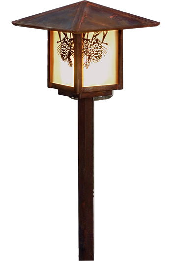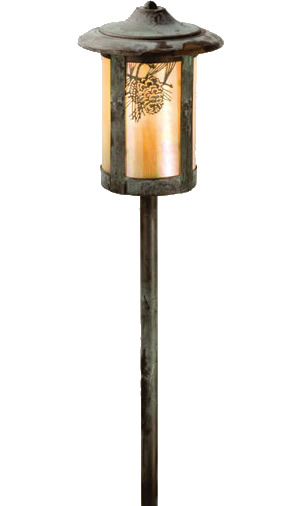 Pine Cone laden branches accent this handsome American Craftsman lantern landscape fixture. This handsome low voltage landscape fixture is handcrafted in the U.S.A. by Meyda Craftsman.