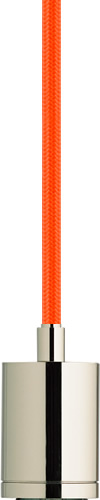 Tech Lighting SoCo Socket & Cord with Orange Cord and Satin Nickel Finish Modern Socket and Canopy, Shown with Half-Chrome Bulb