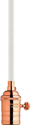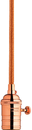 The SoCo system of Sockets & Cords delivers choice, flexibility and the power of custom design. The SoCo sockets accommodates any 120 volt, Medium base lamp up to 150 watts. We have made it easy to create your own look. Mix, match and cluster to create a truly unique light sculpture or just install a few at a time to put light exactly where you need it. Available in 2 socket styles, 3 standard lengths, 7 cord colors, and 4 finishes. Ships with matching canopy. Consult factory for custom cord colors and lengths. We stock and make it easy to order some of the most popular lamps including several energy efficient LED and compact Fluorescent options. This product can mount to either a 4" square electrical box with round plaster ring or an octagon electrical box.