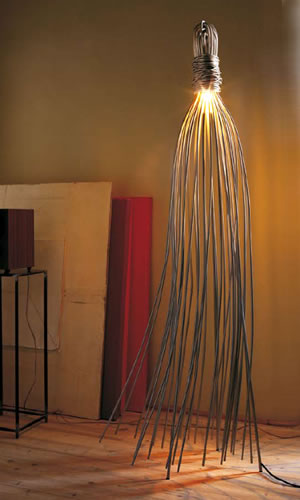 Floor Lamp consisting of a collection of hand-forged metal stems in Satin Nickel finish with sanded borosilicate glass diffuser.